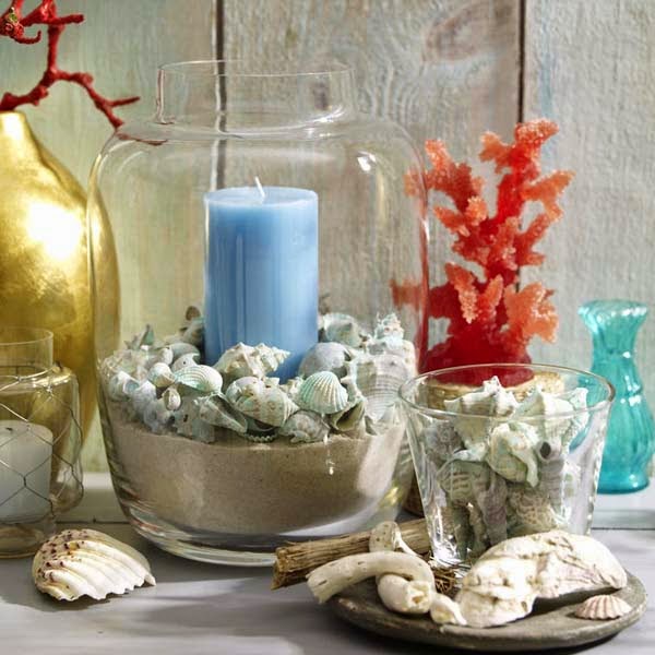 Mέσα σε γυάλες, βάζα, δίσκους, πιατέλες ή μόνα τους, πλαισιωμένα από καλοκαιρινά …θαλασσινά στοιχεία όπως άμμο, κοχύλια, βότσαλα, ξύλα της θάλασσας αλλά και φυσικά υλικά όπως σκοινί, ψάθα κλπ. τα κεριά είναι από τους ευκολότερους τρόπους για να δημιουργήσετε εποχιακές διακοσμητικές συνθέσεις κάθε μεγέθους για κάθε χώρο του σπιτιού, τον κήπο, το μπαλκόνι ή για τα καλοκαιρινά τραπέζια σας.
